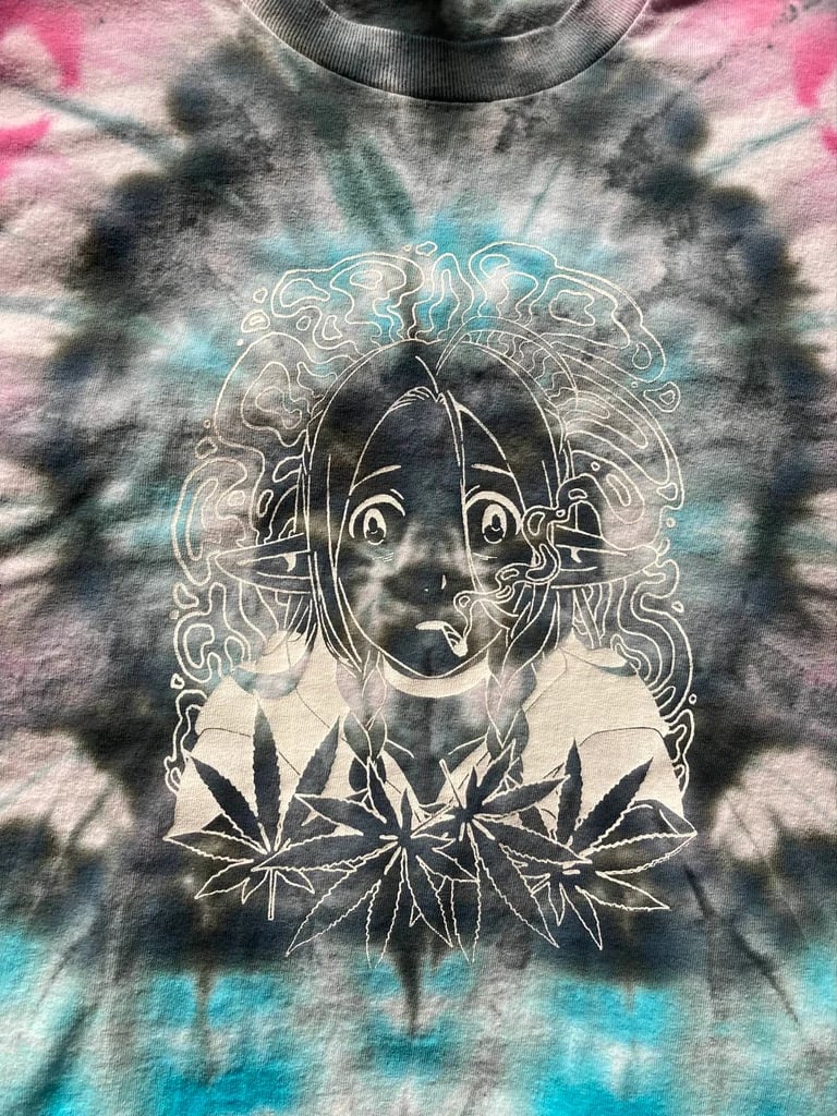 Dank n' Dungeon- Kaleidoscope Tie-Dye Blue, Black, White, and Pink Tee- XL