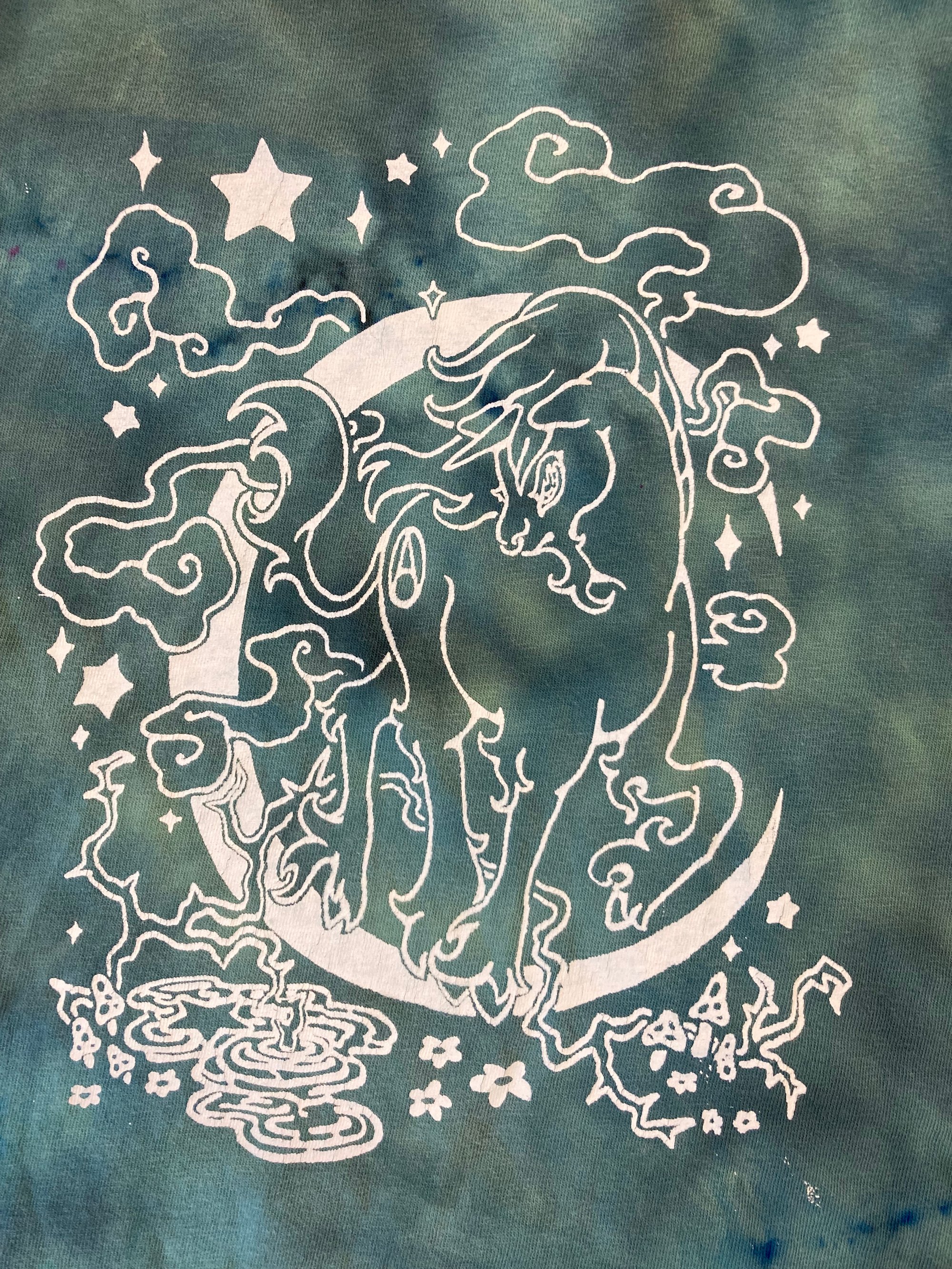 Abolition Unicorn - Black and teal Scrunch dyed tee- M
